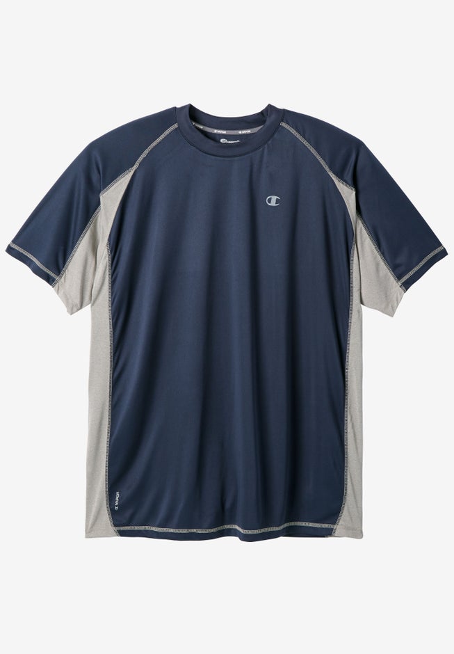 If you just want a comfortable, athletic leisure look, the Vapor® Colorblock Performance Tee combines the quality and durability of Champion® with the perfect fit of King Size. Overall, it's versatile performance tee that's perfect for reaching your daily step count and tackling long days on your feet.