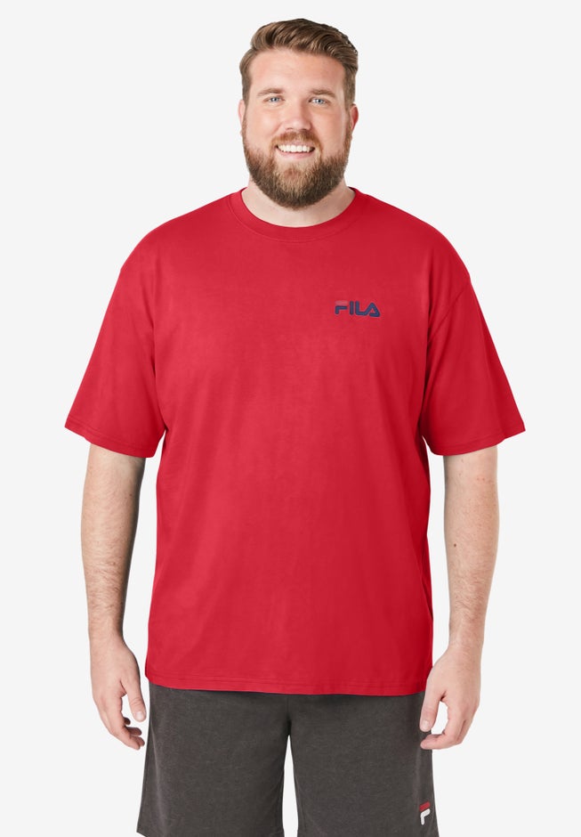 The stylish Big and Tall FILA® T-Shirt from KingSize is a comfortable, lightweight tee designed for plus-size men who want an easy, dependable fit, and everyday wearability. Soft and breathable, this big and tall T-shirt feels easy on the skin, making it perfect for layering under jackets or hoodies, wearing solo for casual outings, or lounging at home. With a classic FILA® logo, it pairs effortlessly with big and tall jeans, joggers, shorts, or performance pants, giving you a relaxed yet polished look for any casual occasion.