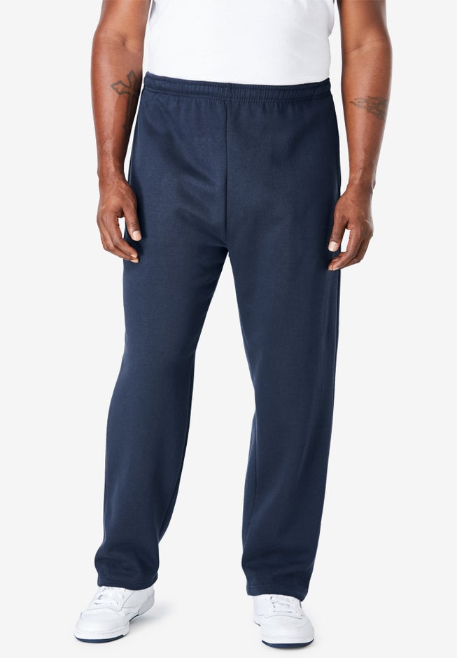 Designed specifically for larger builds, these Big and Tall Fleece Open-Bottom Sweatpants from KingSize deliver the comfort, coverage, and durability you need without sacrificing freedom of movement. Built for big and tall proportions, these extended size athletic pants feature a fuller cut, longer rise, and properly scaled inseams so nothing feels tight, short, or restrictive. The result? All-day comfort, easy mobility, and the confidence that comes from wearing plus-size pants that are actually made for your frame—not just sized up.