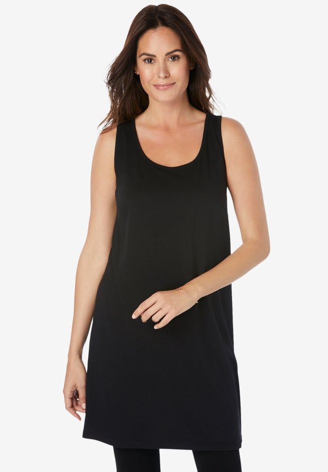 A-line, relaxed-fit sleeveless top for cool and easy comfort. In a soft cotton blend knit that moves with you and drapes nicely. A great tunic length to layer over leggings!