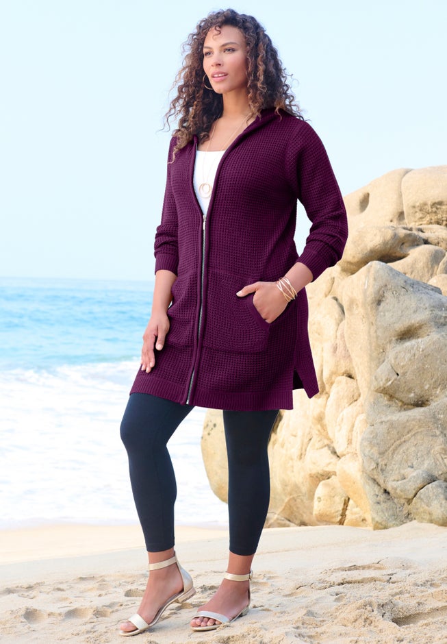 Go the extra mile for comfort with this Mega-Length hoodie. Zip-front with long sleeves and two front pockets, rib cuffs and hem. Side slits.